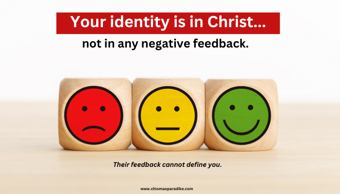 - Be clear about one thing – the feedback is about what you’re doing or have done and not about who you are. The devil is always looking for ways to accuse and condemn us. He amplifies the negativity and tries to ascribe this to our identity.