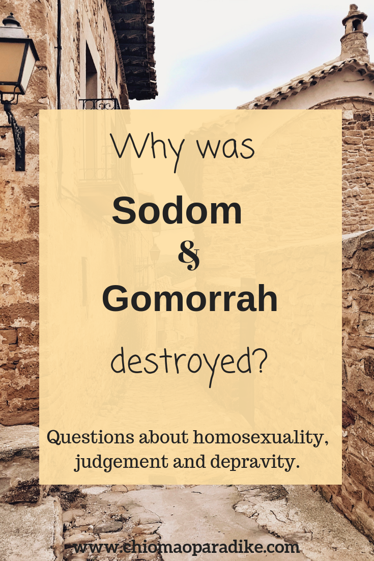 There have been varying schools of thought on why the cities of Sodom and Gomorrah were destroyed. I have heard people say it was because of homosexuality and others say it was because of their greed and lack of generousity (Ezekiel 16:49-50).